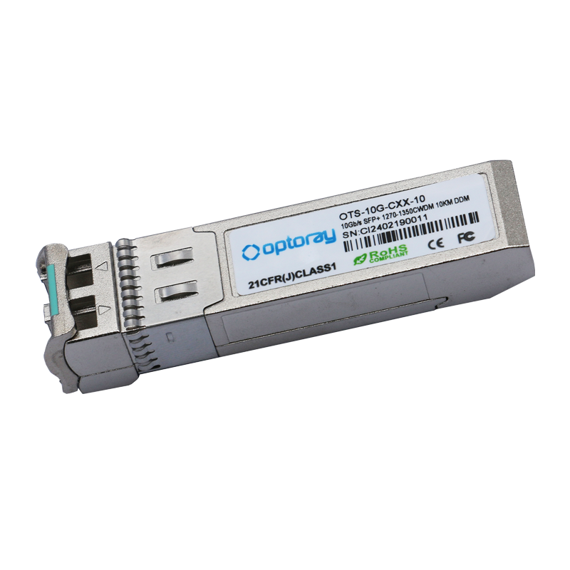 Bộ thu phát chế độ đơn dòng OTS-10GXXX là một mô-đun có thể cắm vào hệ số dạng nhỏ để truyền dữ liệu quang nối tiếp hai chiều như IEEE 802.3ae 10GBASE-LR/LW. Nó đi kèm với đầu nối SFP 20 chân để cho phép khả năng cắm nóng. Chức năng chẩn đoán kỹ thuật số có sẵn thông qua I2C. Mô-đun này được thiết kế cho sợi quang đơn mode và hoạt động ở bước sóng danh định là bước sóng CWDM. Có 16 bước sóng trung tâm từ 1270 nm đến 1610 nm, mỗi bước 20 nm. Ngân sách liên kết quang được đảm bảo là 11 dB được cung cấp. Phần máy phát sử dụng laser DFB giếng lượng tử đa CWDM và là loại laser loại 1 tuân thủ Tiêu chuẩn An toàn Quốc tế IEC-60825. Phần máy thu sử dụng bộ tiền khuếch đại máy dò InGaAs (IDP) tích hợp được gắn trong tiêu đề quang và IC hậu khuếch đại giới hạn. Mô-đun thu phát tuân thủ Thỏa thuận đa nguồn có thể cắm hệ số dạng nhỏ (SFP) (SFF-8432). Giao diện giám sát chẩn đoán kỹ thuật số nâng cao đã được tích hợp vào Bộ thu phát SFP. Bộ giám sát thời gian thực về nhiệt độ, điện áp cung cấp, dòng điện phân cực laser, công suất đầu ra trung bình của laser và công suất đầu ra nhận được được cung cấp dựa trên SFF-8472.